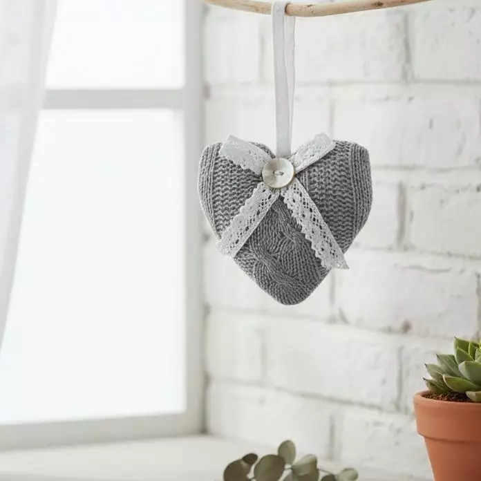 Hennon harmaan sävyinen pehmeä sydänkoriste.