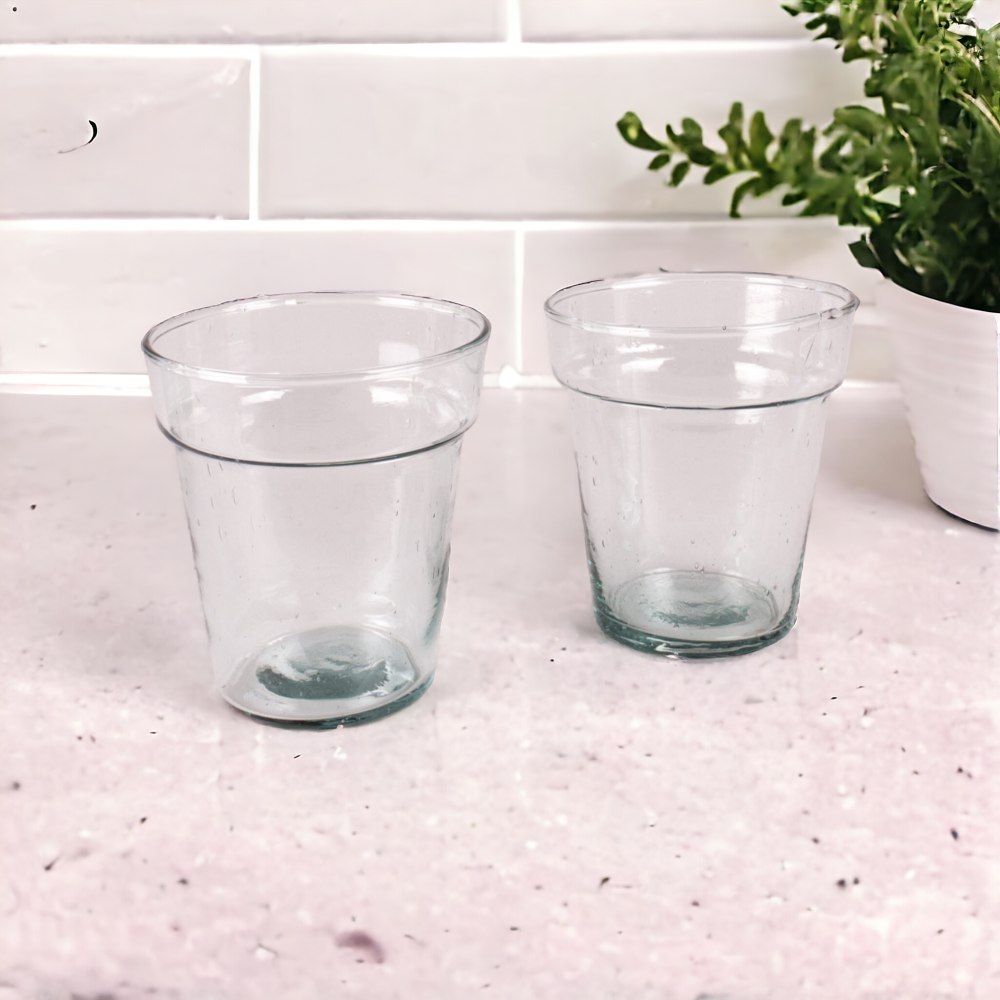 Uusiolasista valmistettu vesilasi, korkeus 10 cm