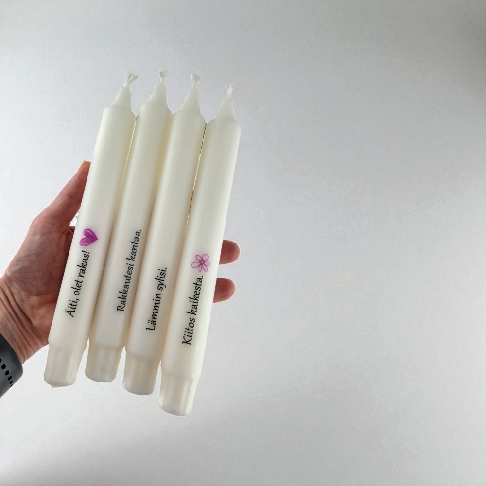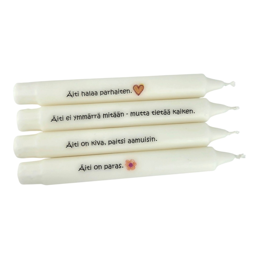 Nämä kynttilät ovat loistava äitienpäivälahja, joka kantaa mukanaan lämmintä viestiä silloinkin, kun kynttilä ei pala.