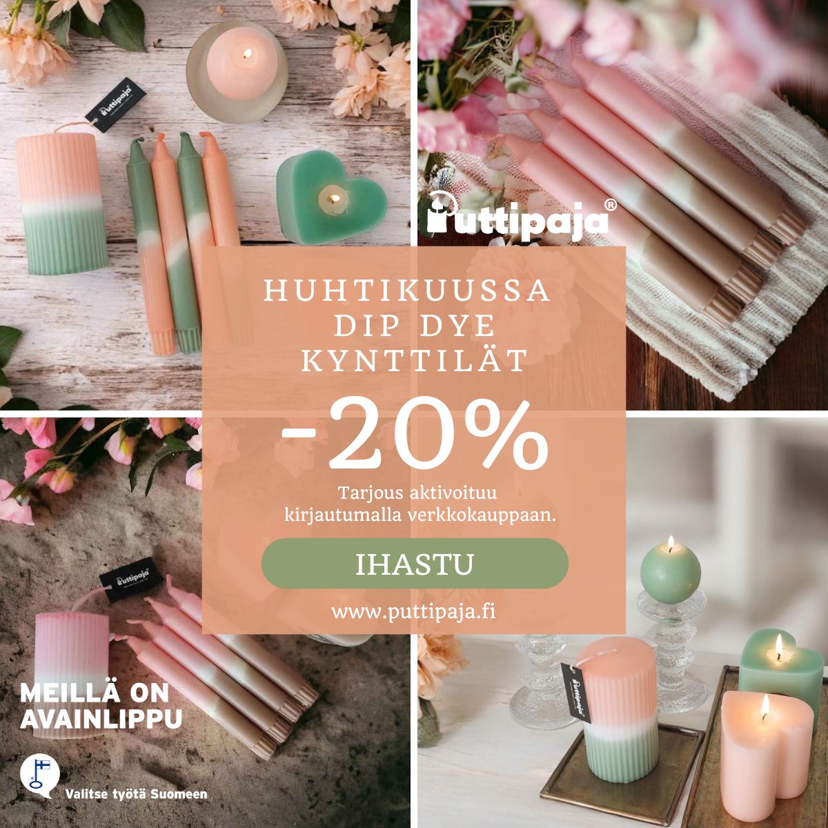 DIP DYE KYNTTILÄ -20% HUHTIKUUSSA KIRJAUTUNEILLE KULUTTAJA-ASIAKKAILLE
