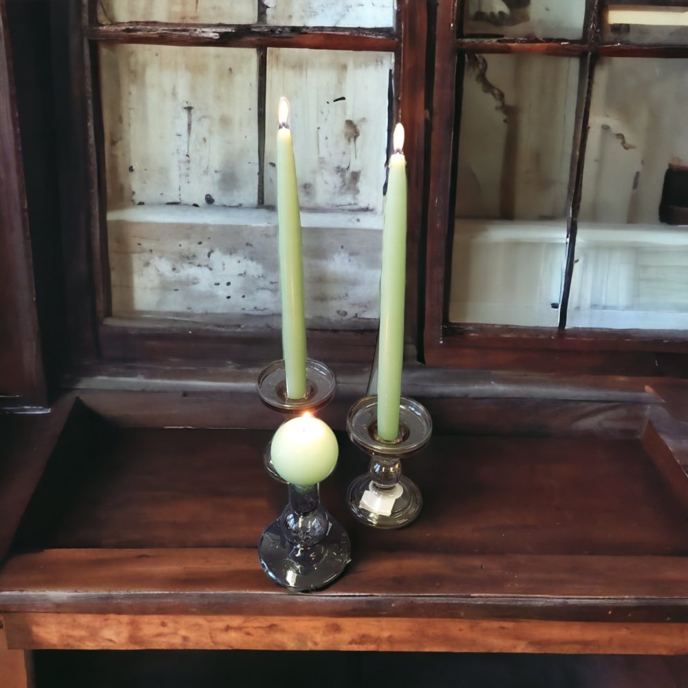 Paketillinen sointuvien sävyjen pallokynttilöitä.