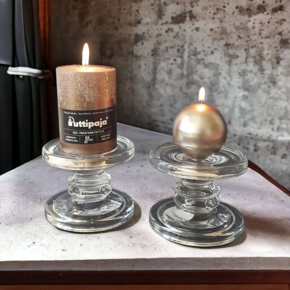 Upea metallihohtoinen pallokynttilä. Pallokynttilät myydään kahden kynttilän paketissa.