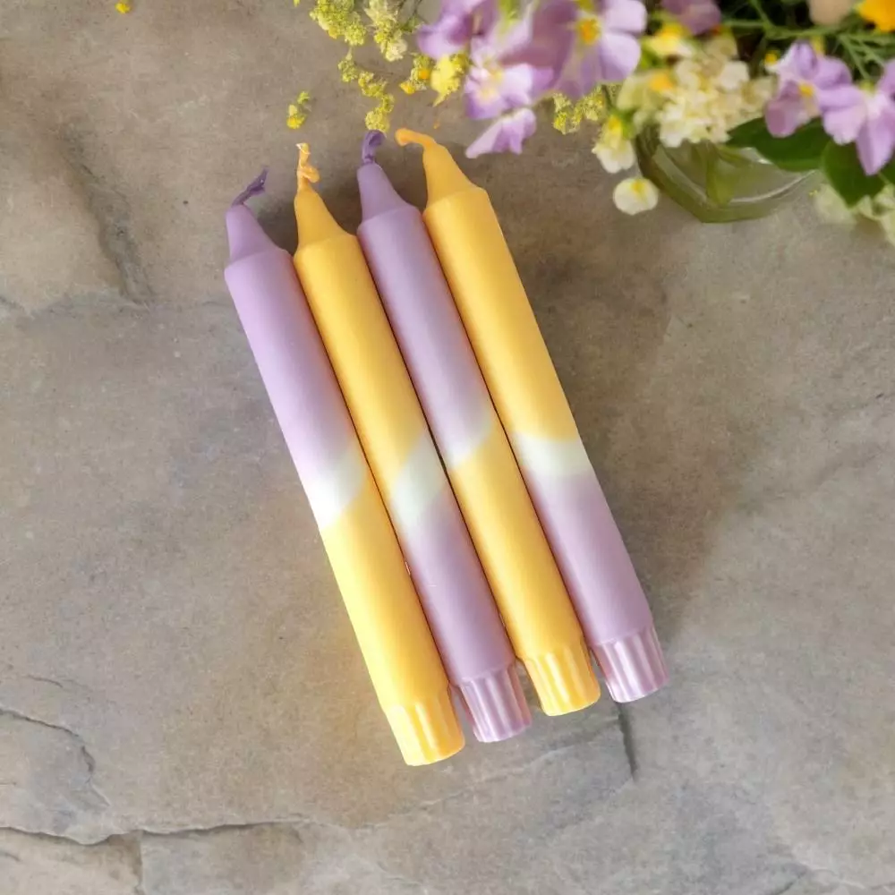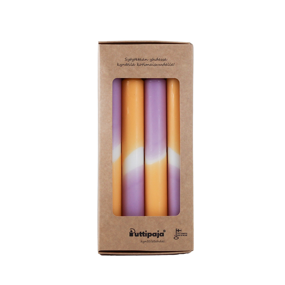 Keltaisen jalallisen pallokynttilän paloaika on 12 tuntia. Pallokynttilät myydään kahden kynttilän paketissa.