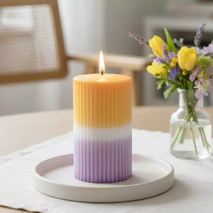 Keltaisen jalallisen pallokynttilän paloaika on 12 tuntia. Pallokynttilät myydään kahden kynttilän paketissa.