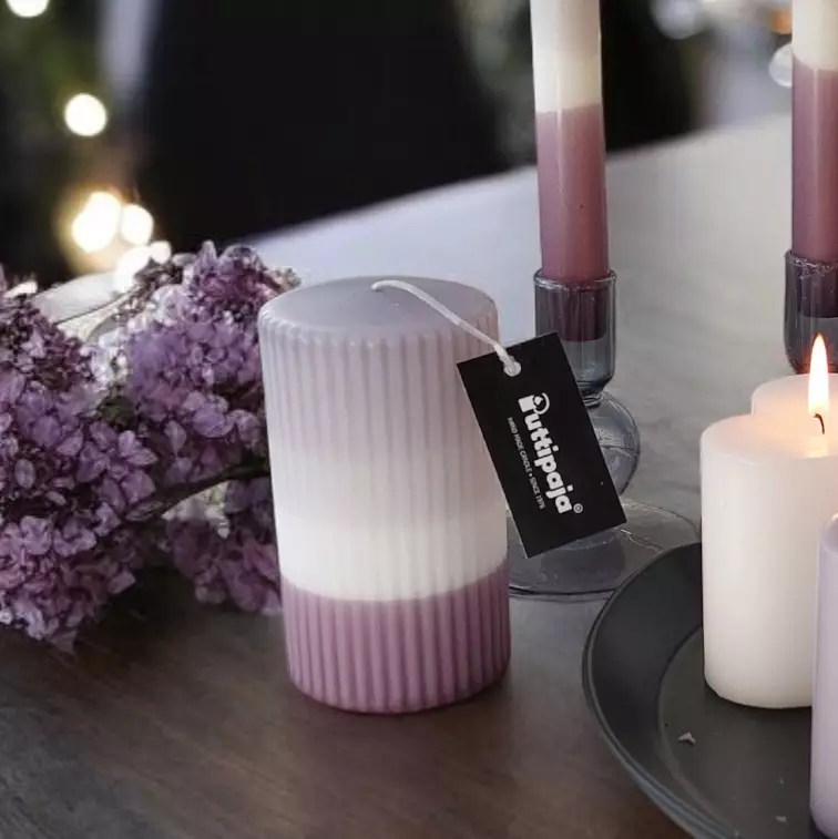 Raidalliset vekkikynttilämme valmistetaan käsityönä Dip dye -menetelmällä, joten jokainen kynttilä on upeasti uniikki.