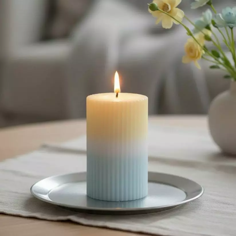 Dip dye vekkikynttilä vaaleankeltainen, vaaleansininen 12 cm