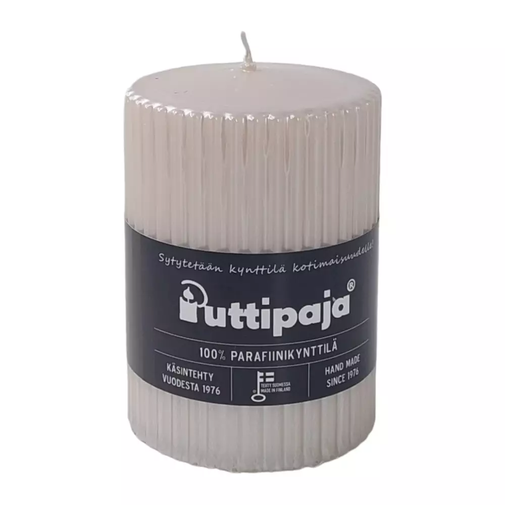 Kolmivärisiä kuunukynttilöitä neljän kynttilän pakkauksessa.