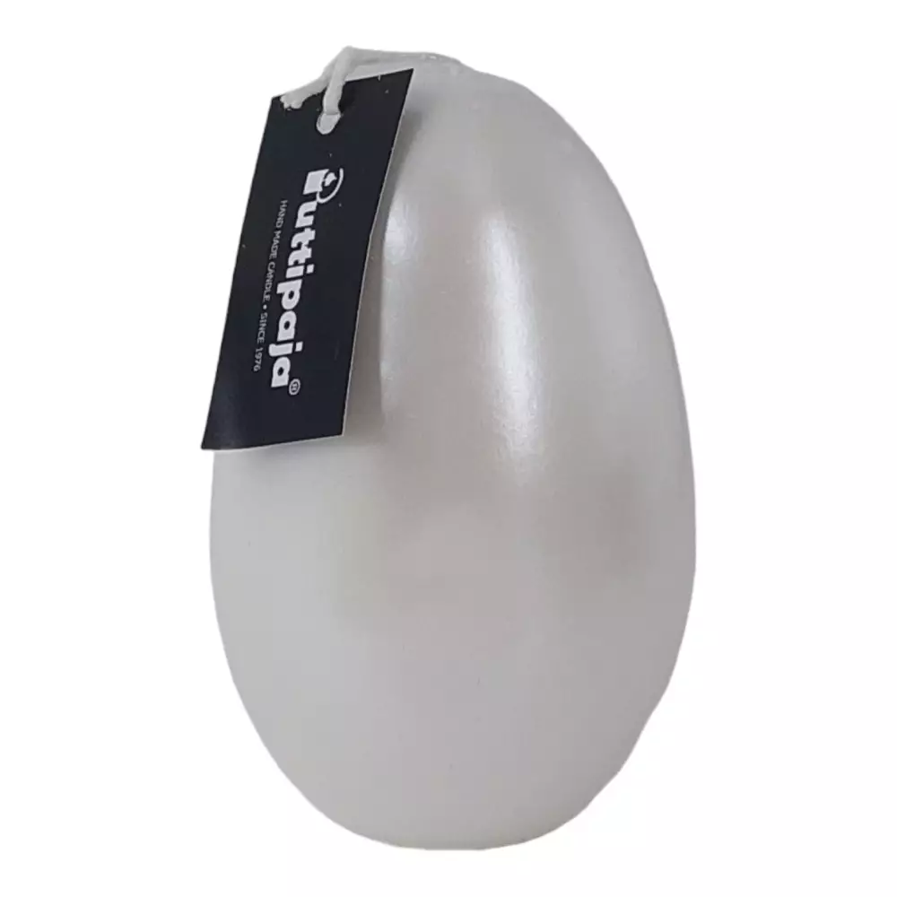 Upea helmiäishohtoinen pallokynttilä. Pallokynttilät myydään kahden kynttilän paketissa.