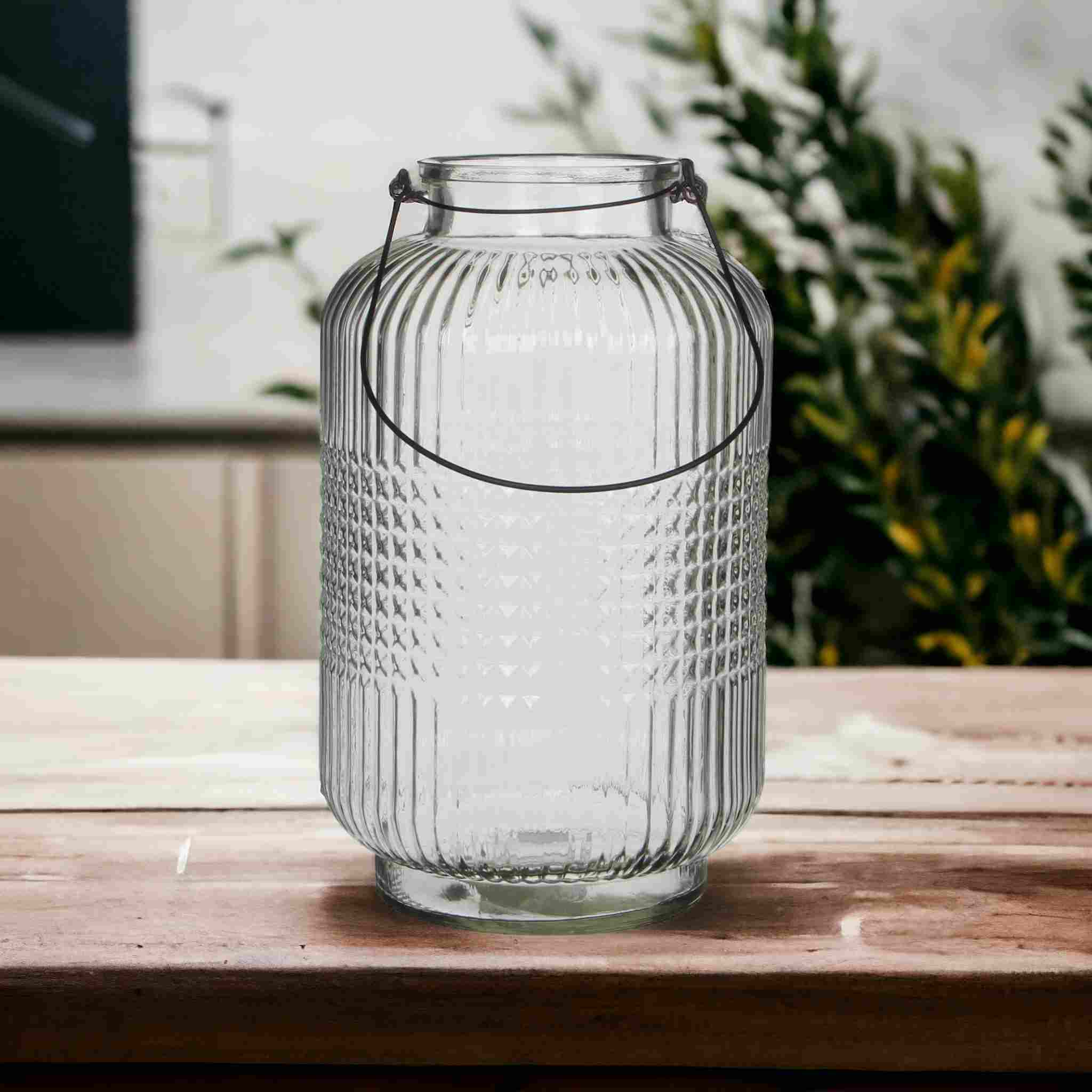 Lasilyhty on kuviopintaista läpinäkyvää lasia. Hämärässä kynttilän liekki heittää ympäristöönsä kauniita kuvioita, kun kynttilää polttaa tässä pintakuviointia omaavassa lasilyhdyssä.