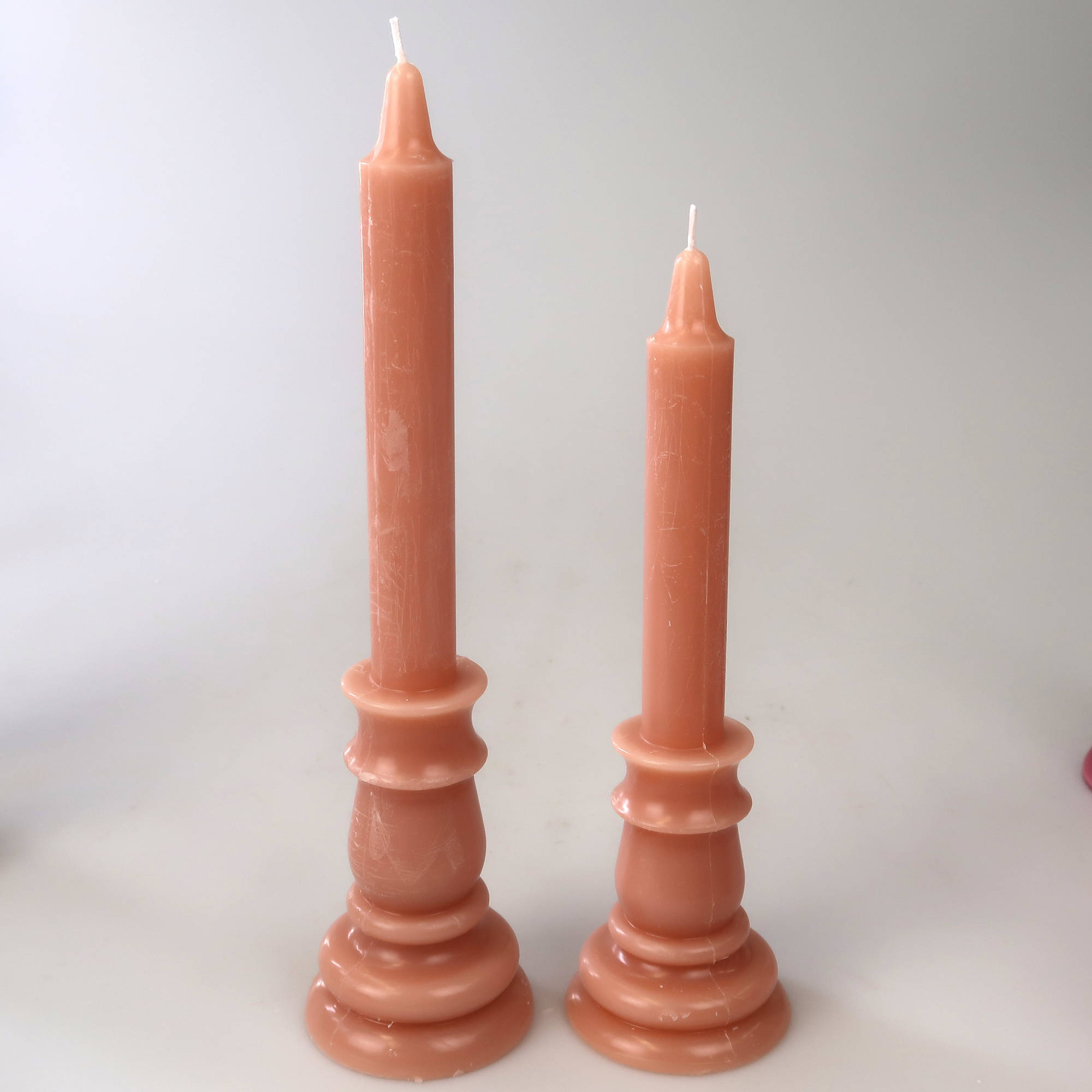 Tyylikäs nuden värinen jalallinen kruunukynttilä kahdessa koossa