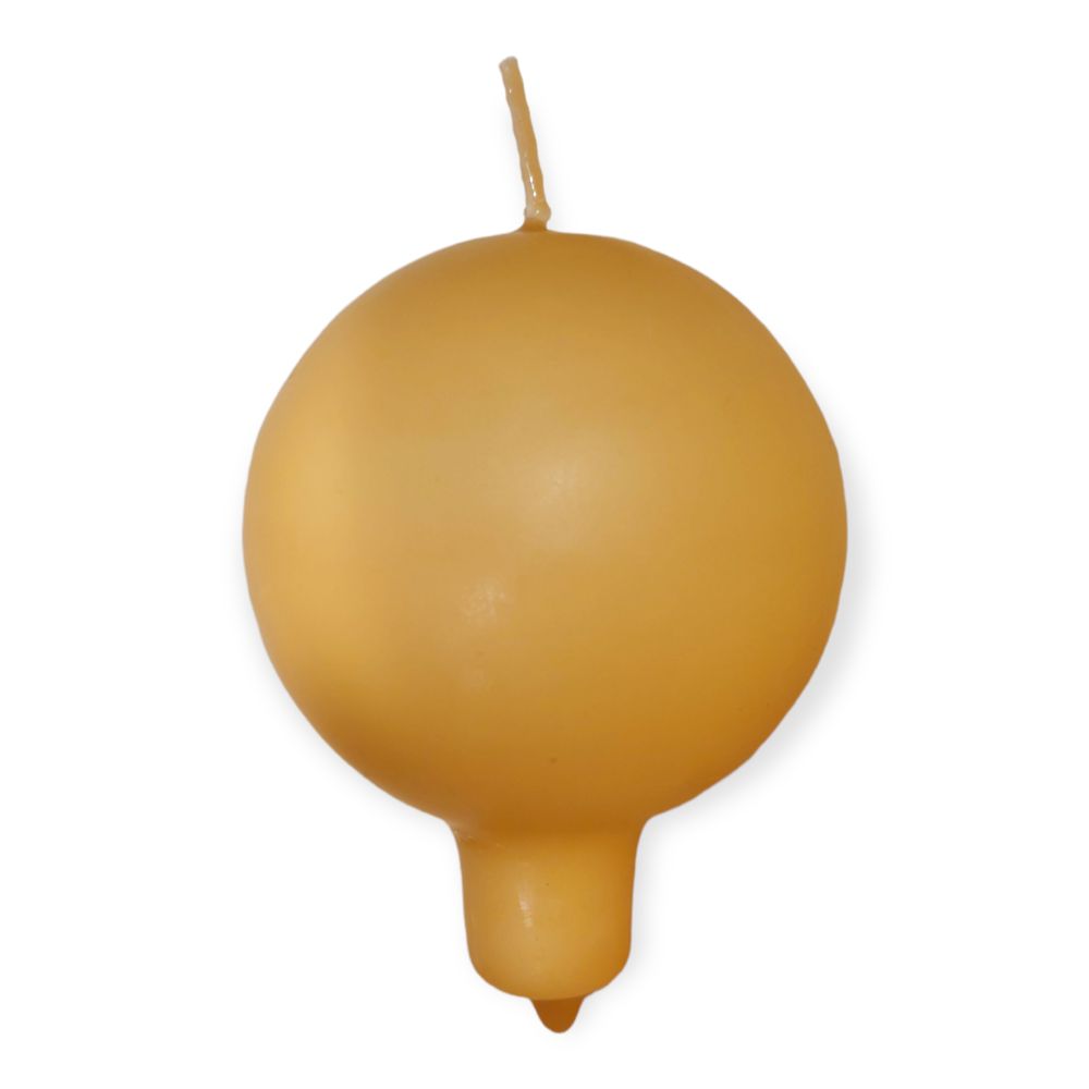 Puttipajan läpivärjätty käsinvalettu okrankeltainen pöytäkynttilä.