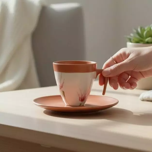 Herkkä kukkakuvioinen kahvikuppi ja asetti