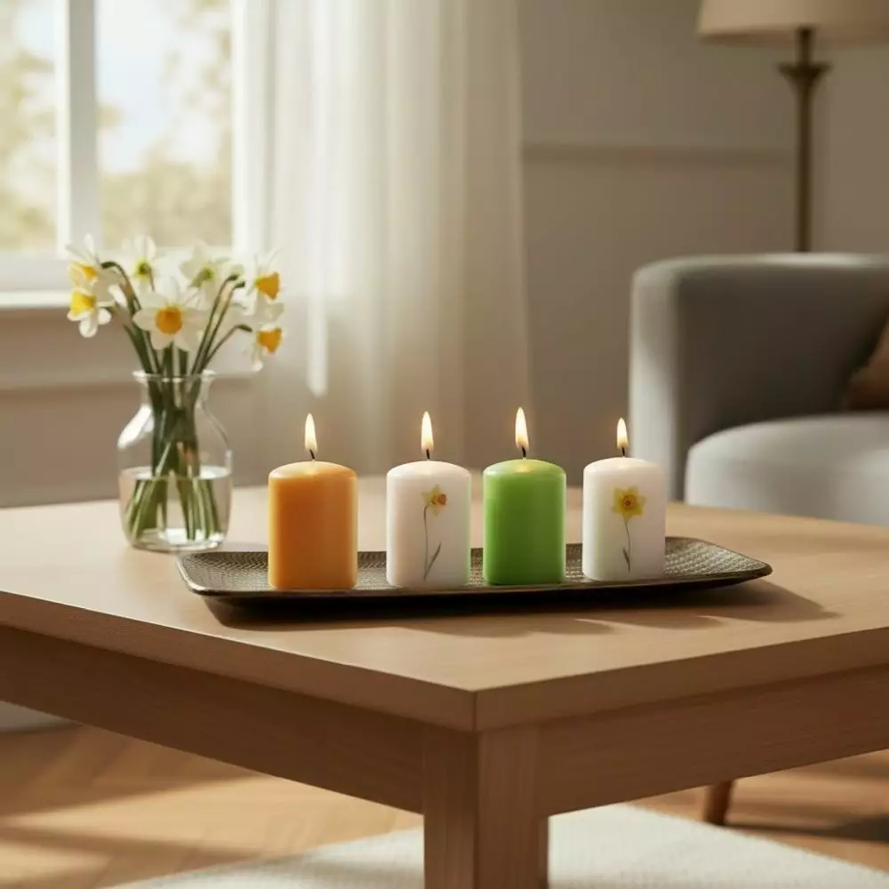 Keväinen-pöytäkynttiläpaketti, narsissin kukat 4 kpl/pkt
