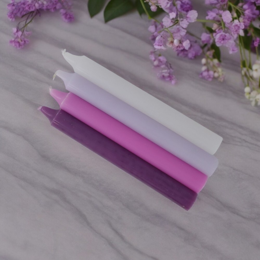 Pakkaus sisältää 4 eriväristä toisiinsa sointuvaa kruunukynttilää.