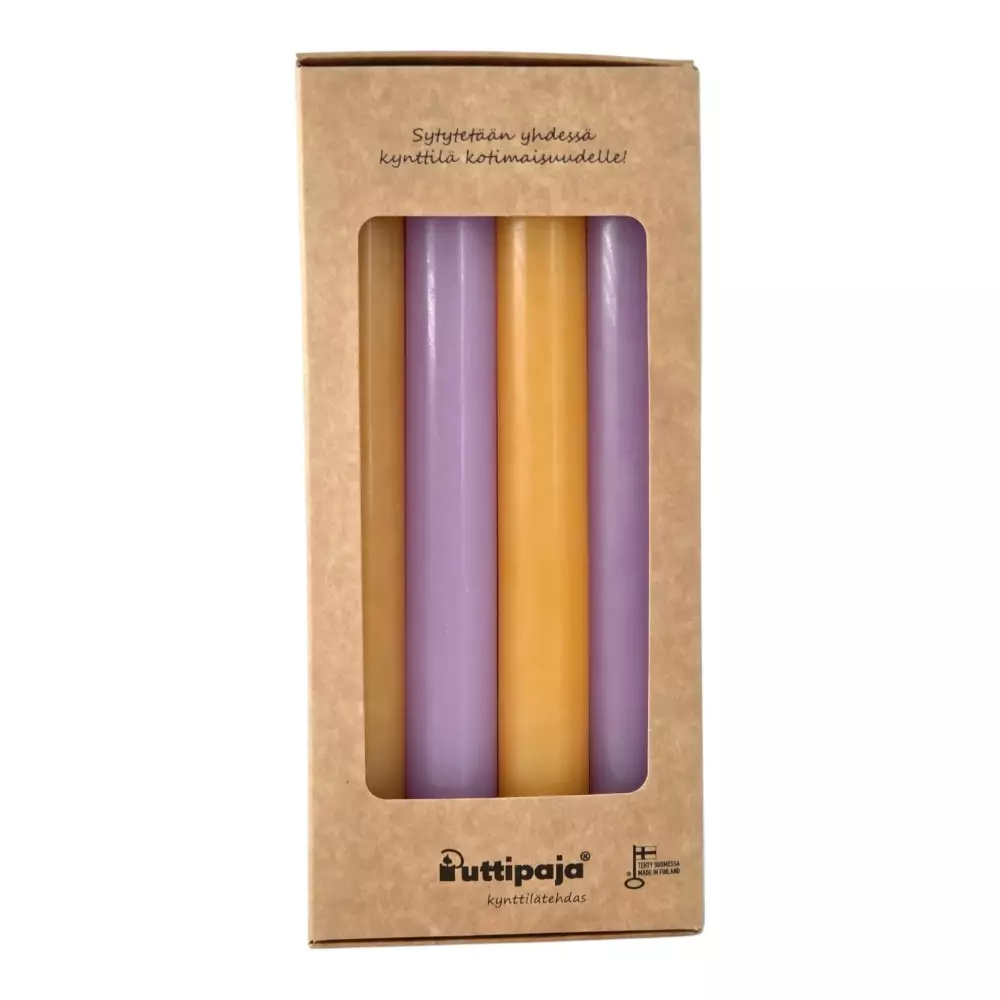 Keltaisen jalallisen pallokynttilän paloaika on 12 tuntia. Pallokynttilät myydään kahden kynttilän paketissa.