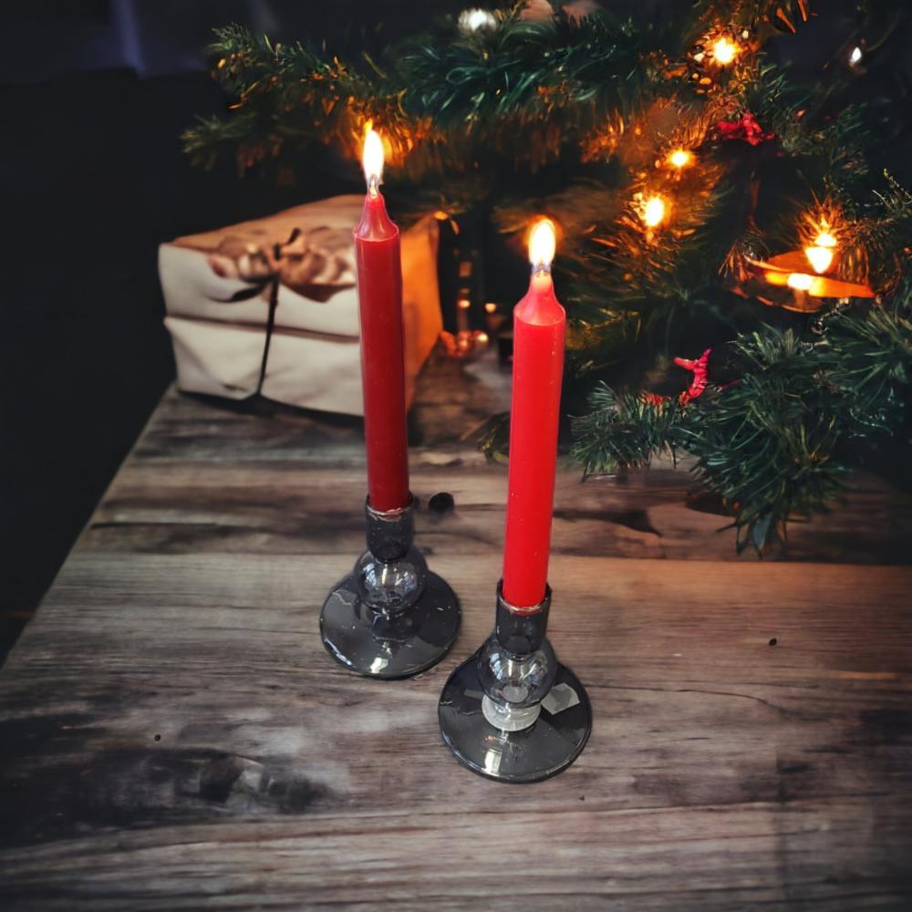 Läpivärjätty kruunukynttilä, 20 kpl laatikko Väri: Punainen Koostumus: 75 % parafiinia, 25% oliivisteariinia Koko: 2,2x20 cm Kynttilän paloaika: ~9 h
