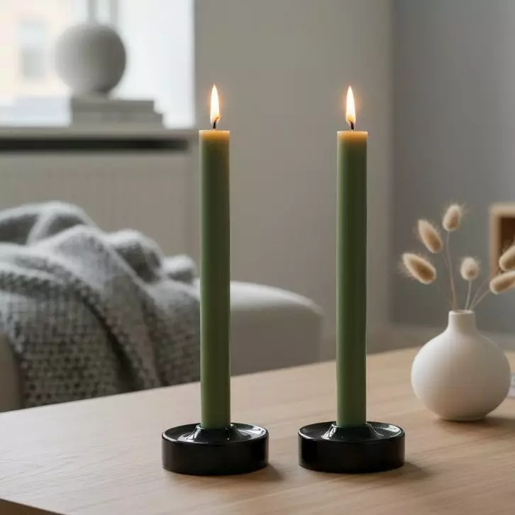 Sammaleenvihreän jalallisen pallokynttilän paloaika on 12 tuntia. Pallokynttilät myydään kahden kynttilän paketissa.