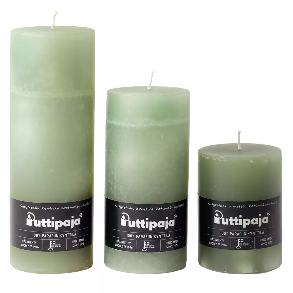 Kynttilän liekin ihastuttava hehku on täydellinen tunnelman tuoja. Läpivärjätty kynttilä säilyttää kauniin värinsä myös kynttilän palaessa. Puttipajan pöytäkynttilän pintakuviointi on vivahteikkaan eläväinen, jota kynttilän liekin valo korostaa kauniisti. Laadukkaasta parafiinista valmistettu ja puuvillaisella sydänlangalla kruunattu läpivärjätty pöytäkynttilä, on käsin valettu kynttilätehtaallamme Vaajakoskella. Käsintehty kynttilä painaa enemmän ja siten se myös palaa puhtaasta ja poikkeuksellisen pitkään, korkeudesta riippuen jopa 160 tuntia.