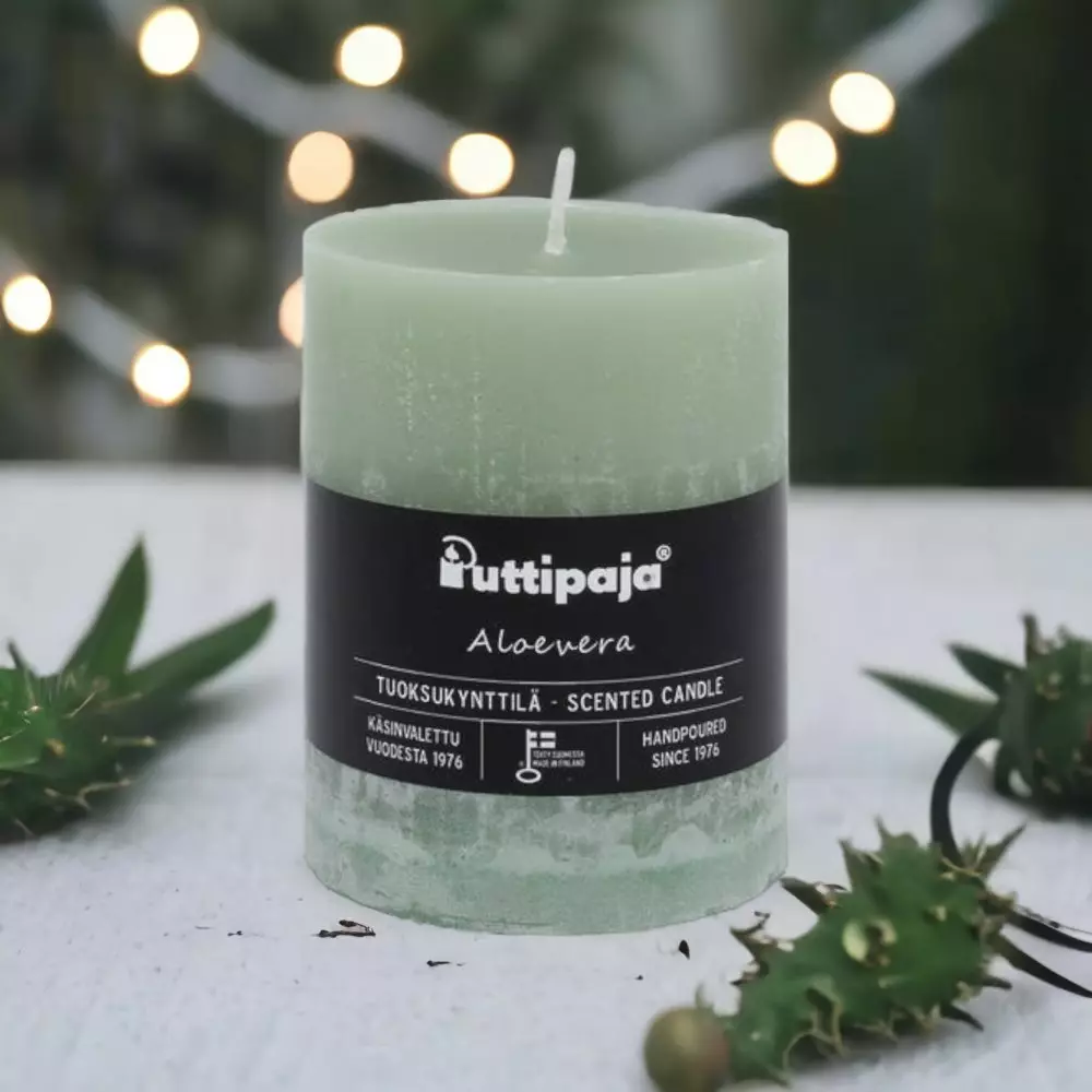 Puttipajan läpivärjätty käsinvaletut pöytäkynttilät useassa koossa.