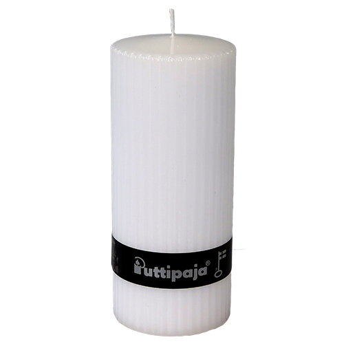 Valkoinen pintavärjätty Loiste-vekkikynttilä 16 cm. Uudessa vekki-kynttilä mallissamme on tyylikäs kiiltävä pinta.