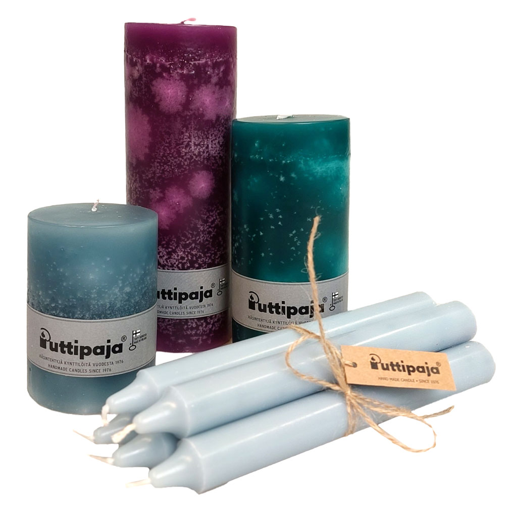 Luumunpunainen pintavärjätty vekkikynttilä.