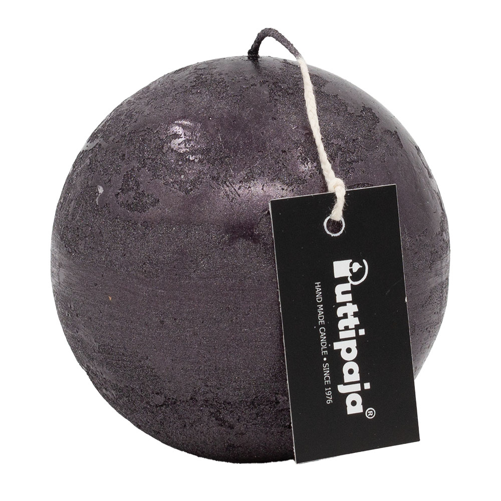 Upea metallihohtoinen pallokynttilä. Pallokynttilät myydään kahden kynttilän paketissa.