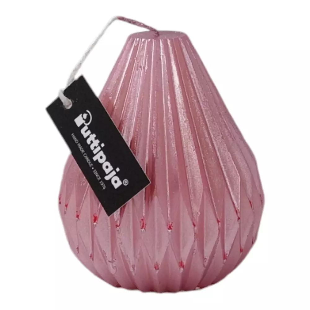 Upea metallihohtoinen pallokynttilä. Pallokynttilät myydään kahden kynttilän paketissa.