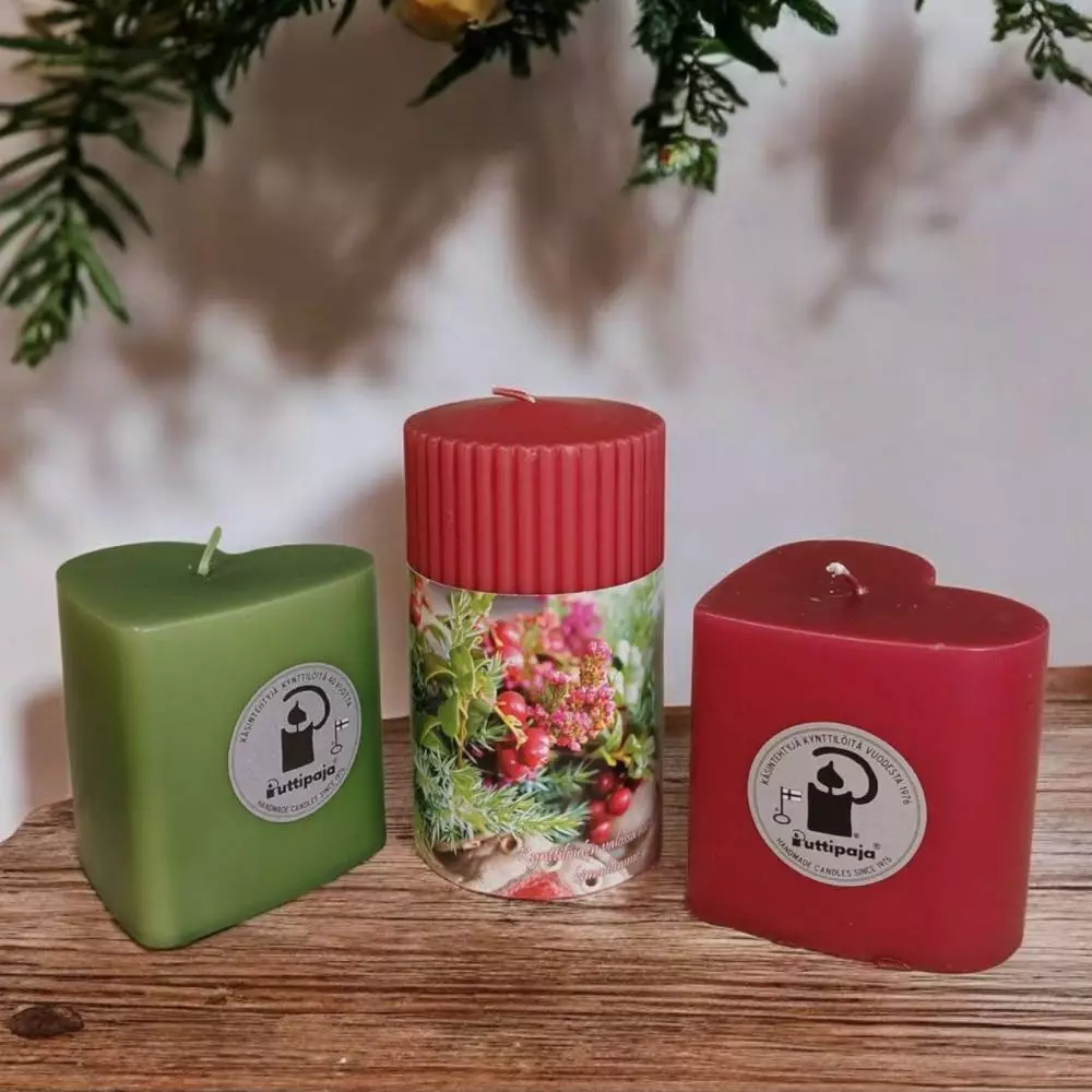 Lisäksi paketissa on kaksi Puttipajan pintavärjättyä sydänkynttilää, paljon rakkautta pienessä paketissa.