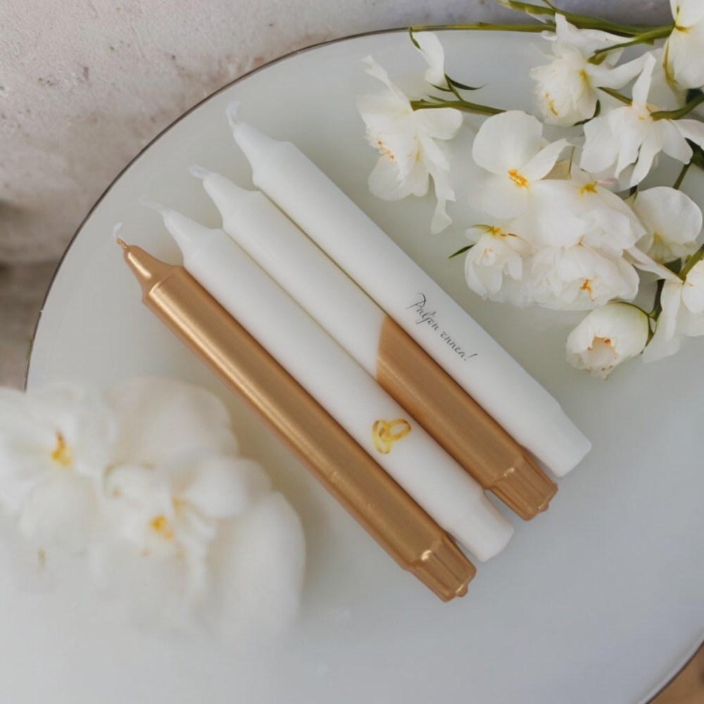 Ihastuttava lajitelma kruunukynttilöitä, joka sopii täydellisesti hää- tai kihlaparin onnitteluun sekä tuomaan juhlan tuntua kattaukseen.