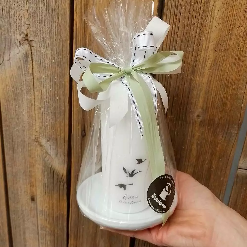 Lahjapakkaus sisältää kauniin muistokynttilän ja valkoisen keraamisen alusen Muistokynttilällä on hyvä kunnioittaa vainajan läheisiä hienostuneella tavalla. Muistokynttilän kuva on tehty... Lue lisää