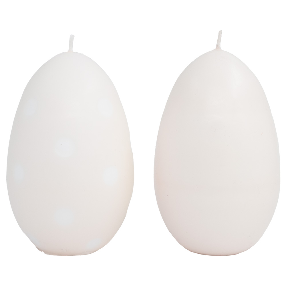 Munakynttilä, pilkullinen tai yksivärinen Väri: Kermai Koostumus: 100% parafiinia Koko: Kynttilän halkaisija 8 cm. Kynttilän korkeus 13 cm. Kynttilän paloaika: ~40 h