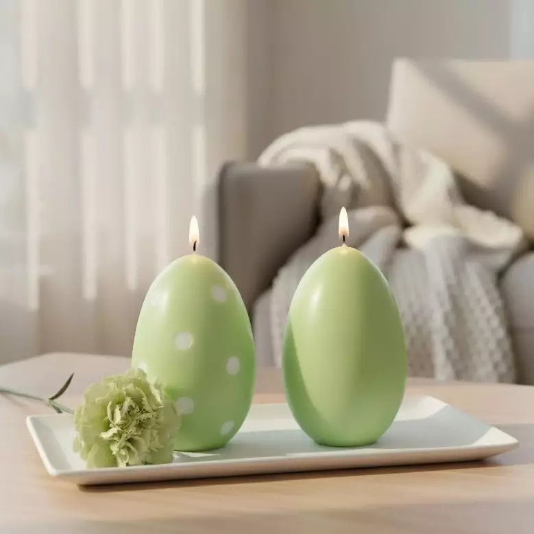 Munakynttilät ihastuttavat niin pirteällä värivalikoimallaan kuin hauskalla keväisellä muotokielelläään. Munakynttilä on valittavissa pilkullisena tai yksivärisenä oman maun mukaan. Tämä kynttilä on mainio koriste pääsiäiseen, mutta kynttilöiden heleät värit sulostuttavat vielä pitkälle kevääseen saakka. Palaessaan kynttilän liekein valo loistaa kauniisti pilkkujen lävitse.