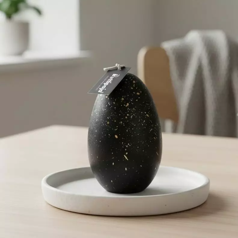 Tätä munakynttilää koristaa kultainen roiske tuoden siihen ripauksen luksusta.