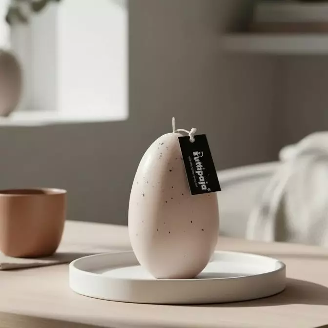 Tätä munakynttilää koristaa mattamusta roiske, joka saa sen näyttämään ihan oikealta linnunmunalta!