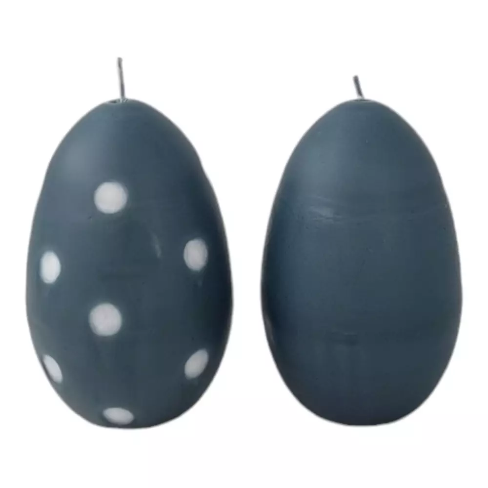 Munakynttilä, pilkullinen tai yksivärinen Väri: Savunsininen Koostumus: 100% parafiinia Koko: Kynttilän halkaisija 8 cm. Kynttilän korkeus 13 cm. Kynttilän paloaika: ~40 h