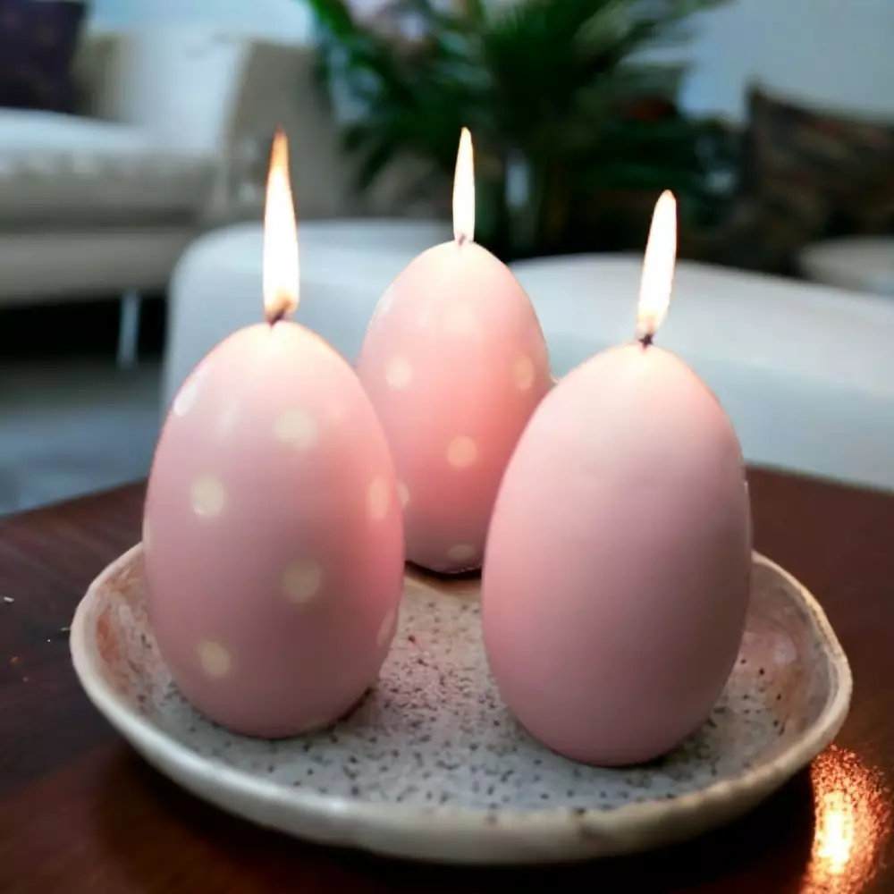 Munakynttilät ihastuttavat niin pirteällä värivalikoimallaan kuin hauskalla keväisellä muotokielelläään. Munakynttilä on valittavissa pilkullisena tai yksivärisenä oman maun mukaan. Tämä kynttilä on mainio koriste pääsiäiseen, mutta kynttilöiden heleät värit sulostuttavat vielä pitkälle kevääseen saakka. Palaessaan kynttilän liekein valo loistaa kauniisti pilkkujen lävitse.