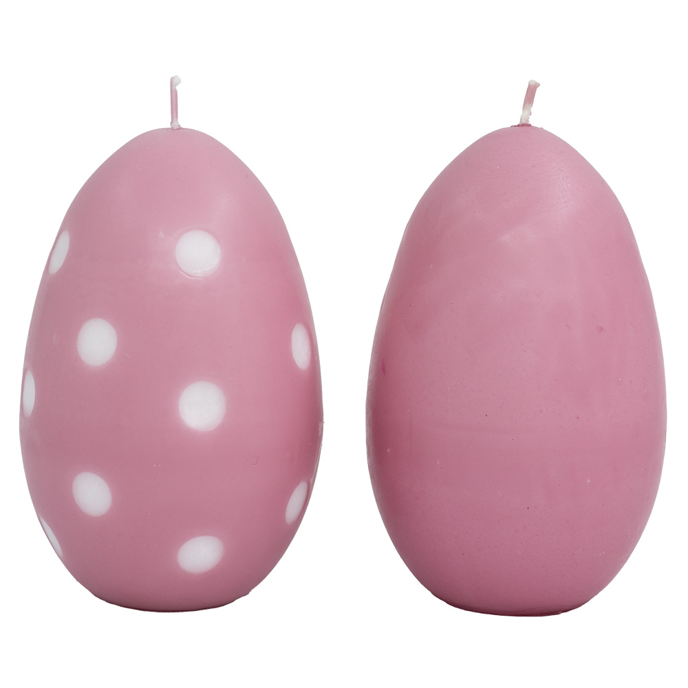 Munakynttilä, pilkullinen tai yksivärinen Väri: Vanha roosa Koostumus: 100% parafiinia Koko: Kynttilän halkaisija 8 cm. Kynttilän korkeus 13 cm. Kynttilän paloaika: ~40 h