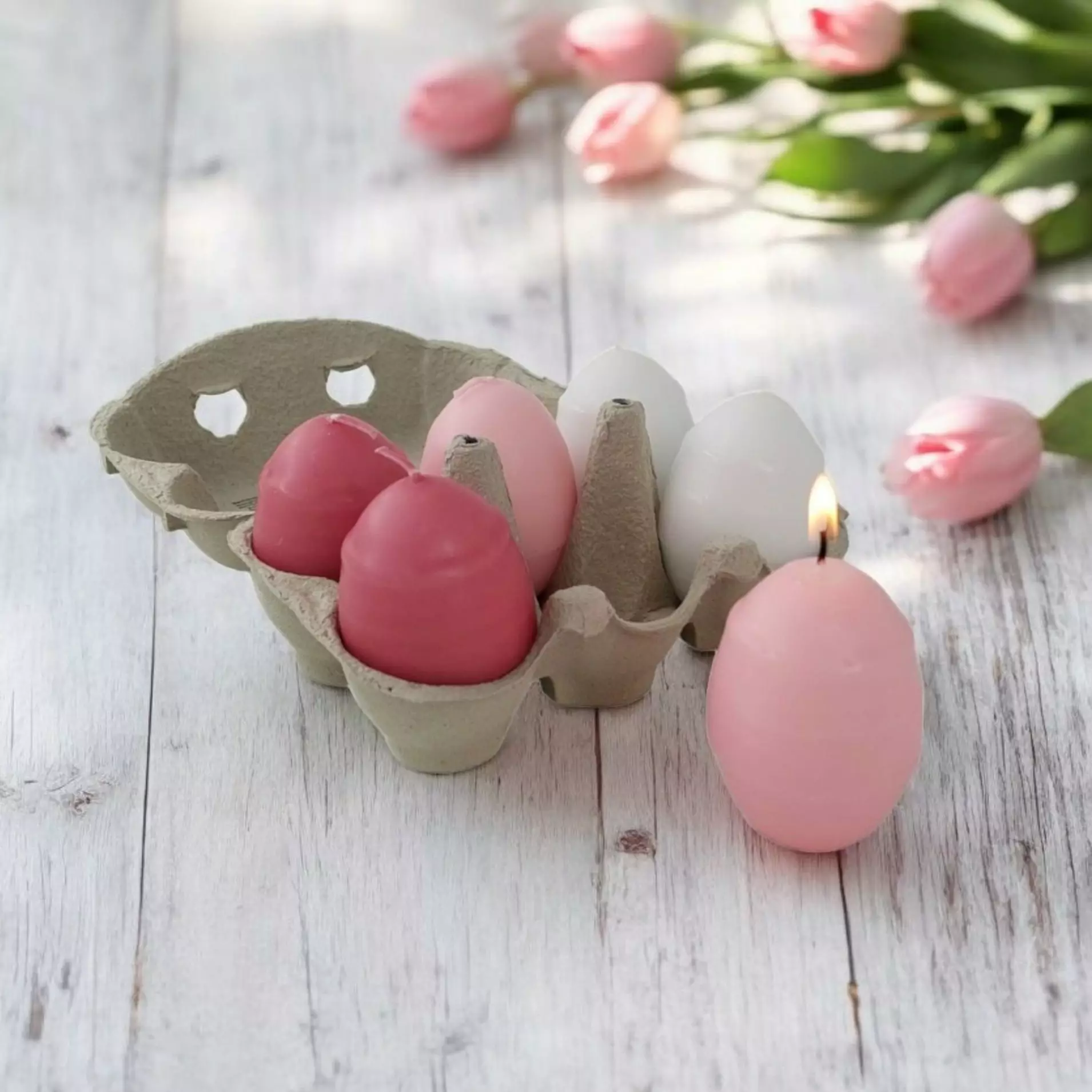 Puttipajan läpivärjätty käsinvalettu vaaleanpunainen pöytäkynttilä.