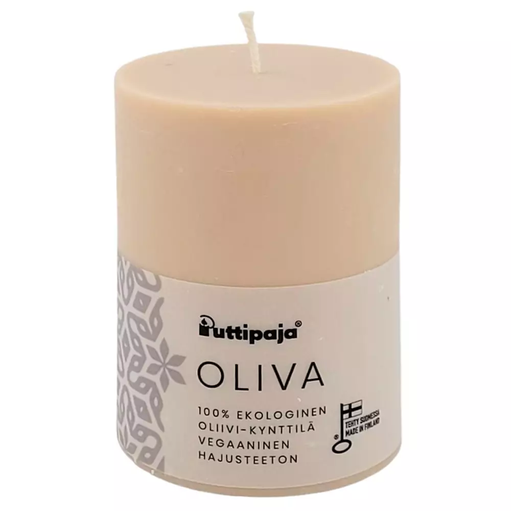 Oliva-oliivikynttilä on läpivärjätty oliivivahasta valmistettu ekologinen pöytäkynttilä.