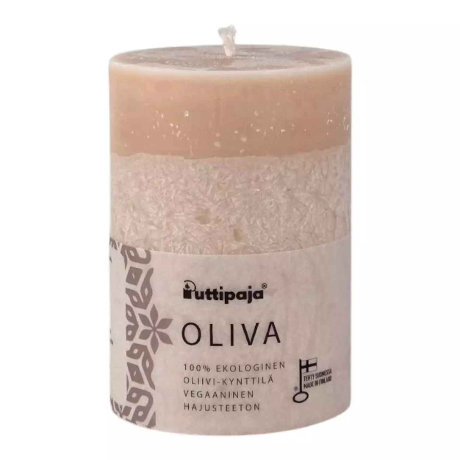 Oliva-oliivikynttilä on läpivärjätty oliivisteariinista valmistettu ekologinen pöytäkynttilä.