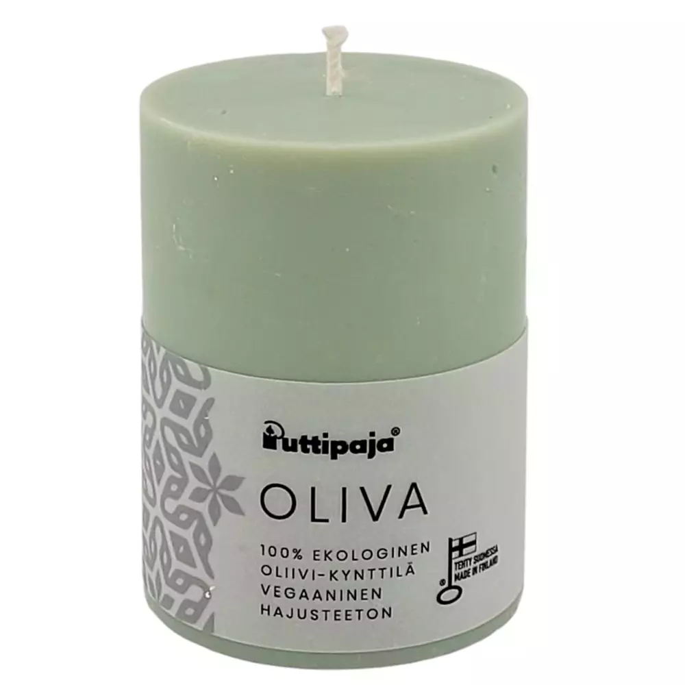 OLIVA-kynttilä on täysin kasvipohjainen ja sen pääraaka-aine on oliivi. Oliivit on kasvatettu Italiassa, jossa ne myös jalostetaan kynttilän raaka-aineeksi. Raaka-aine matkaa meille Vaajakoskelle ja näin ollen OLIVA-kynttilät tuotetaan kokonaan EU:n sisällä.