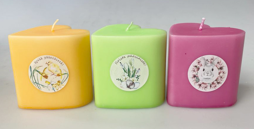 Keltaisen jalallisen pallokynttilän paloaika on 12 tuntia. Pallokynttilät myydään kahden kynttilän paketissa.