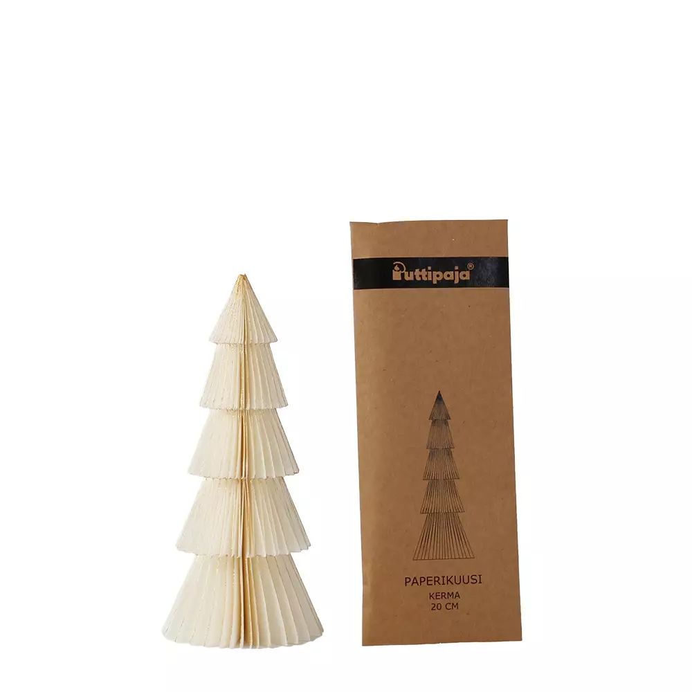 Paperikuusi on helppo taittaa kokoon ja säilyttää omassa pakkauksessaan seuraavaan jouluun. Toimii erinomaisesti myös postitse lähetettävänä