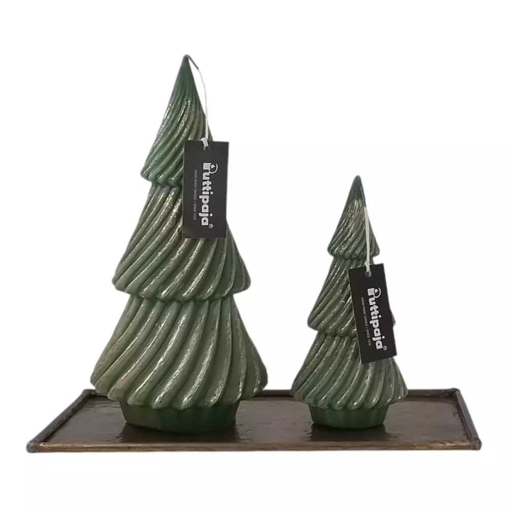 Iso kuusikynttilä kultaisella silauksella, havunvihreä
