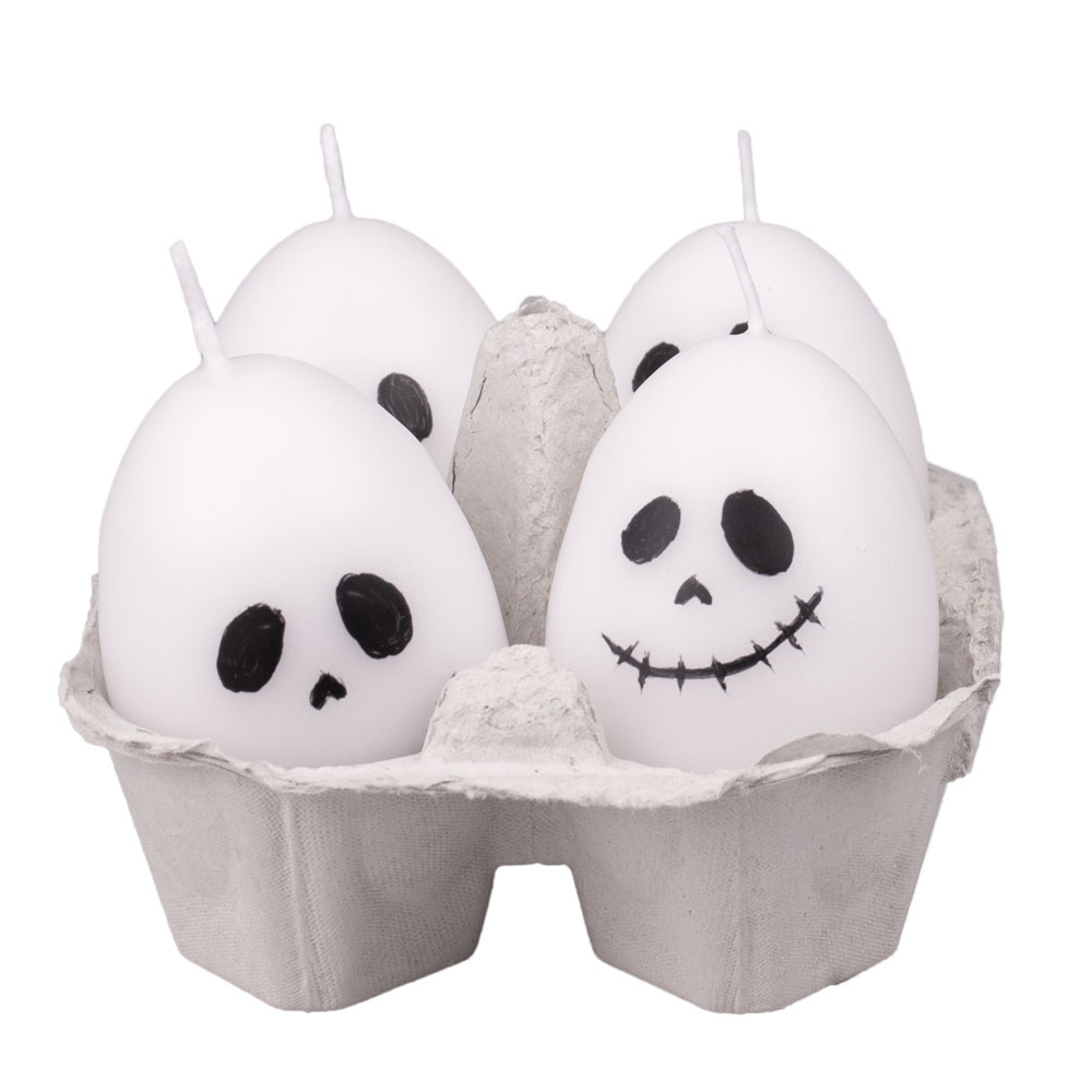 Kasvot maalataan jokaiseen kynttilään käsin, joten niissä voi olla pieniä eroavaisuuksia. Kynttilapakkaus sisältää neljä pientä haamukynttilää.