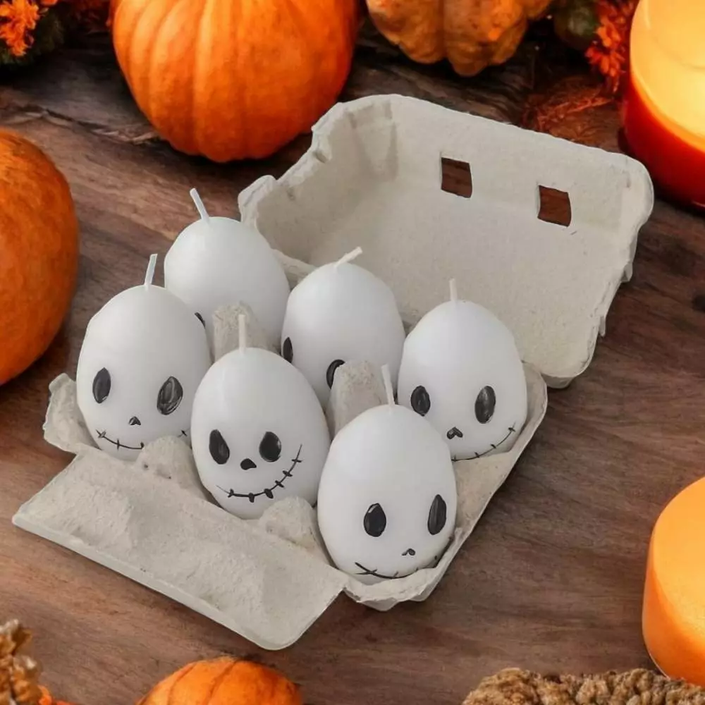 Hurjat haamukynttilät kuuden kappaleen pakkauksessa. Haamukynttilät ovat oiva Halloween-koriste.