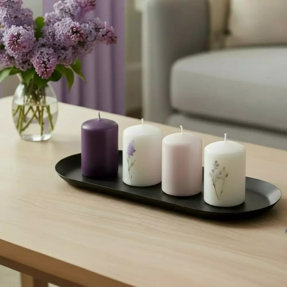 Pöytäkynttiläpakkaus 4 kpl – Kukkateema (lila & luumu)