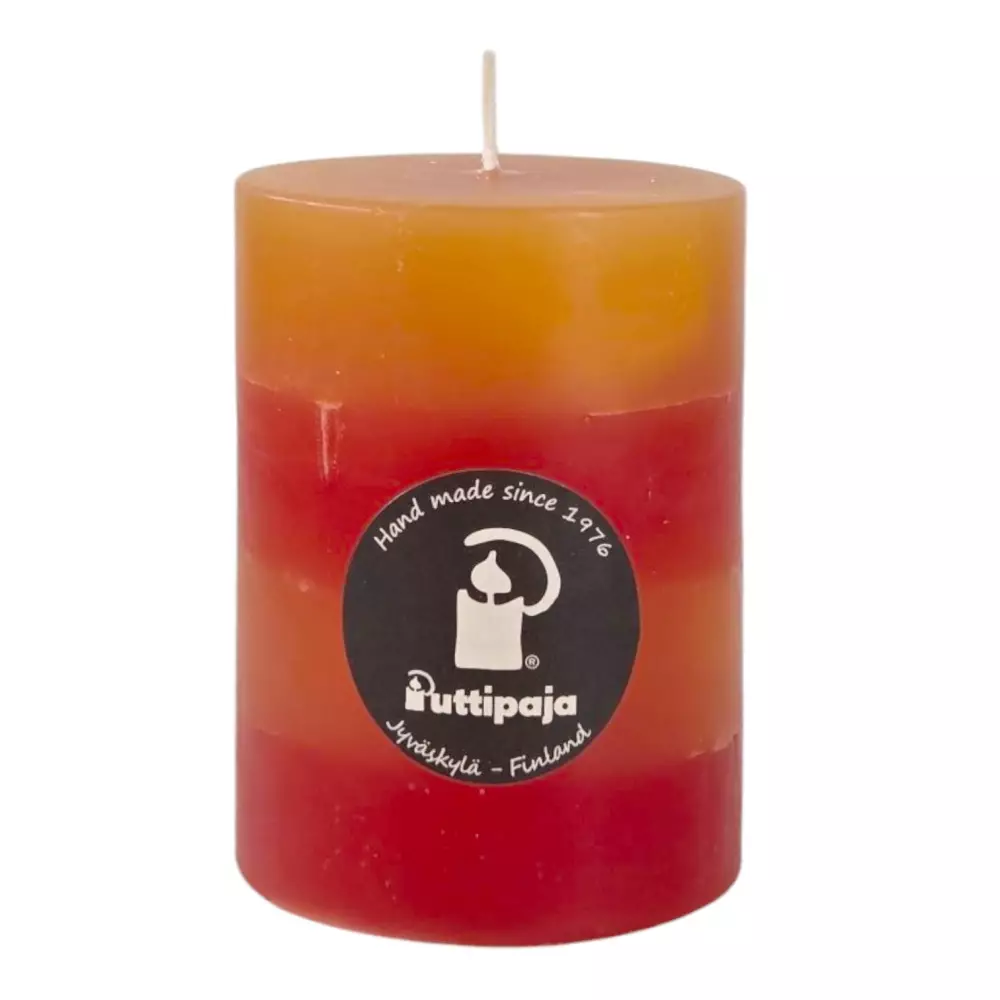 Puttipajan raitakynttilöissä leikitellään erilaisilla herkullisilla väriyhdistelmillä. Läpivärjätty raitakynttilä säilyttää kauniin värinsä myös kynttilän palaessa. Puttipajan pöytäkynttilän pintakuviointi on vivahteikkaan eläväinen, jota kynttilän liekin valo korostaa kauniisti.