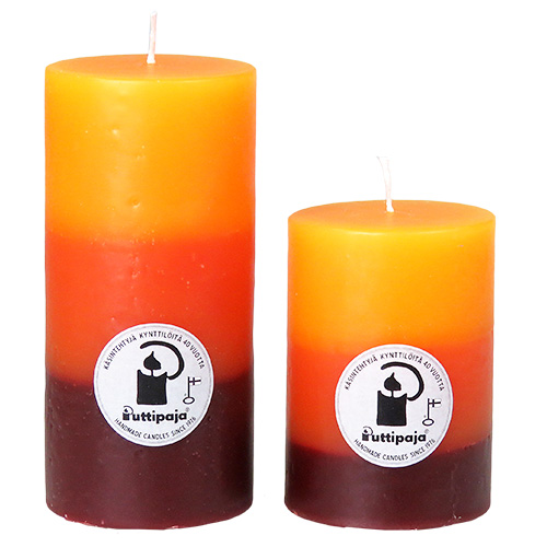 Puttipajan raitakynttilöissä leikitellään erilaisilla herkullisilla väriyhdistelmillä. Läpivärjätty raitakynttilä säilyttää kauniin värinsä myös kynttilän palaessa. Puttipajan pöytäkynttilän pintakuviointi on vivahteikkaan eläväinen, jota kynttilän liekin valo korostaa kauniisti.
