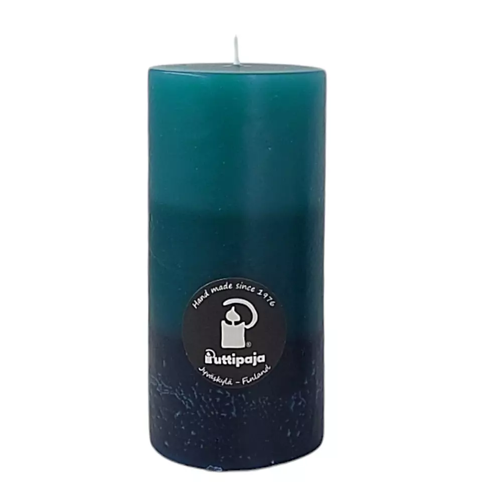 Puttipajan läpivärjätty käsinvalettu yönsininen 10 cm korkuinen pöytäkynttilä.